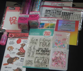 I was playing with my Minc foiling machine and some new Valentine foil cards from Pink and Main and the results were so sparkly and attractive, I knew I had to make some cards for my favorite sweethearts. I started by die cutting the LOVE letters on the foiled card stock. I glued some clear acetate plastic to the back of the letters. Around the letters I adhered some pieces of double stick foam tape forming a rectangle. (I cut the tape into thinner pieces.) Into the rectangle of foam tape I added some Valentine confetti, pulled off the backing of the foam tape and placed another acetate film onto the tape. Doing the confetti box like this is less frustrating and saves on confetti (instead of doing the whole card as a shaker). This whole confetti foiled card front was then adhered to the card blank with more foam tape. Finally, the Ai images were stamped and colored with Copic pens before fussy cutting them out. They were attached with foam dots to add extra dimension.